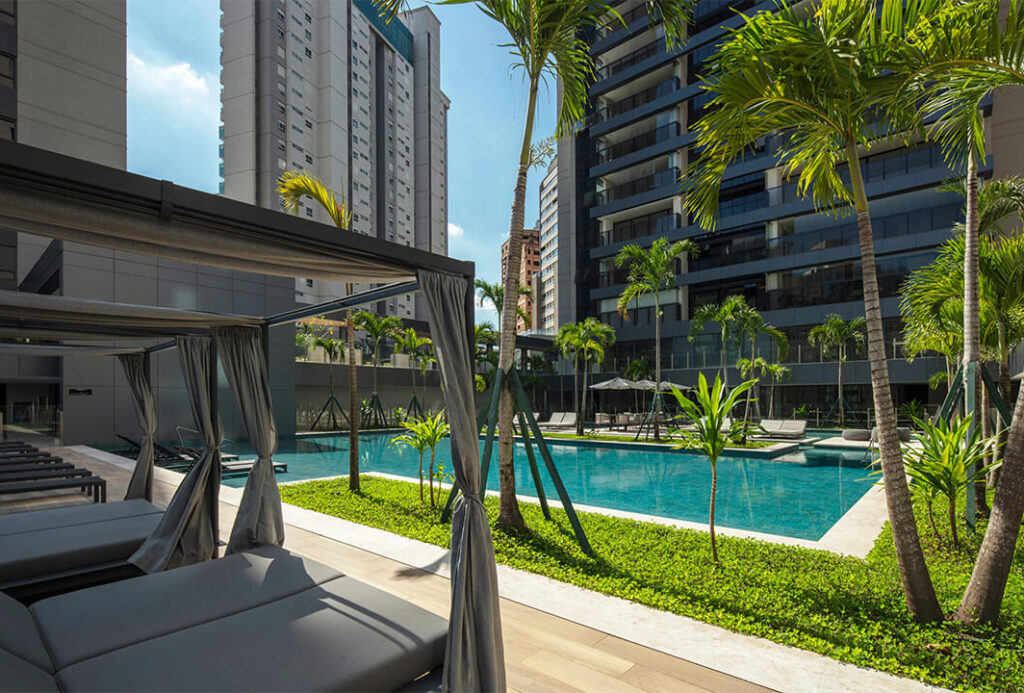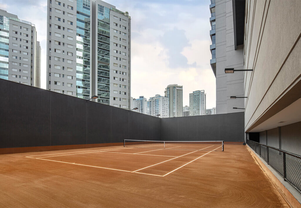 Condomínio oferece uma área de lazer completa e sofisticada, incluindo: Quadra de tênis de saibro (18 x 34 m); Quadra esportiva; Piscinas climatizadas adulto e infantil; Piscina coberta climatizada com raia de 25 m; Dois salões de festas (Pienza e Cortona); Dois lounges gourmet (Pienza e Cortona); Duas adegas (Pienza e Cortona); Fitness completo; Espaço kids e espaço teen; Playground; Sauna e repouso; Espaço de massagem; Espaço de beleza; Pet care e pet place e Patinetes e bicicletas elétricas compartilhadas.