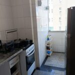 Sala grande com 2 ambientes, cozinha, área de serviço, 2 vagas de garagem demarcadas, livres e cobertas.